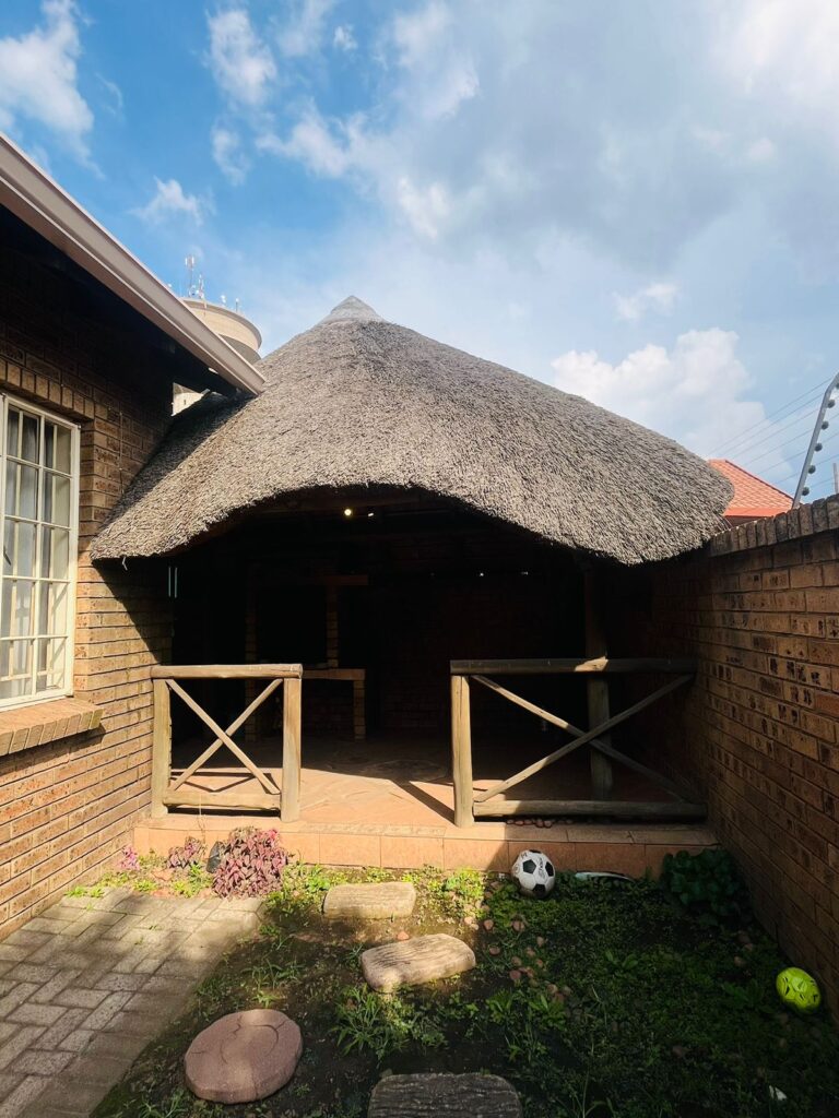 Here are just a few of its wonderful features: new kitchen cabinets, laundry room, built in jacuzzi, braai area (lapa) with built in braai stand, Jojo tank with electronic pressure pump, alarm system (panic button), prepaid meter, electronic fence, gate and garage plus so much more!