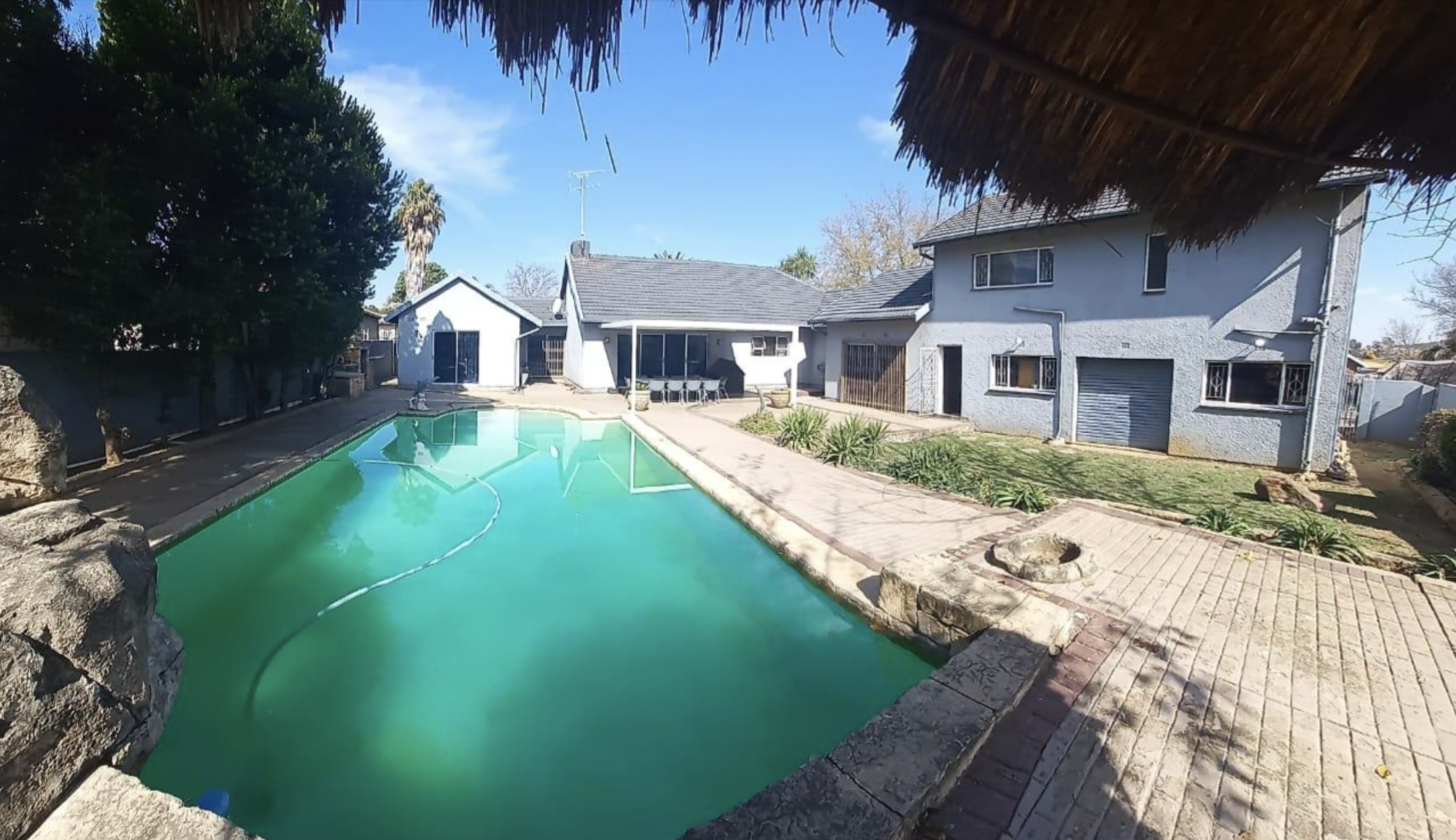 Entrance wall lead to the bedroom area. 4 large bedrooms with built-in cupboards. The main bedroom is huge with spacious walk through cupboards, the main bedroom also has a sliding door leading to the swimming pool and private garden area and has an en suite. This home also comes with a spacious granny flat. Well-equipped open plan kitchen, spacious bedroom and walk-in cupboard. Bathroom with shower. It can be used for family or it can be rented out and bring extra income