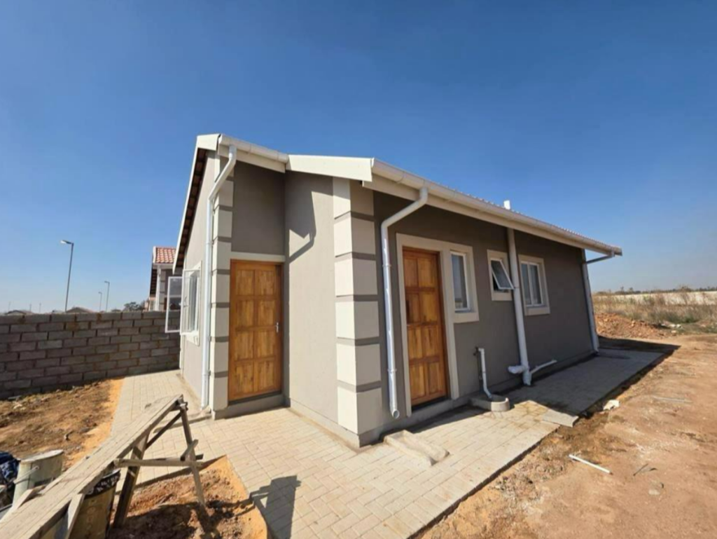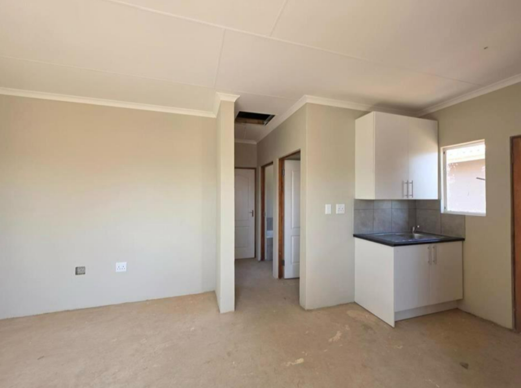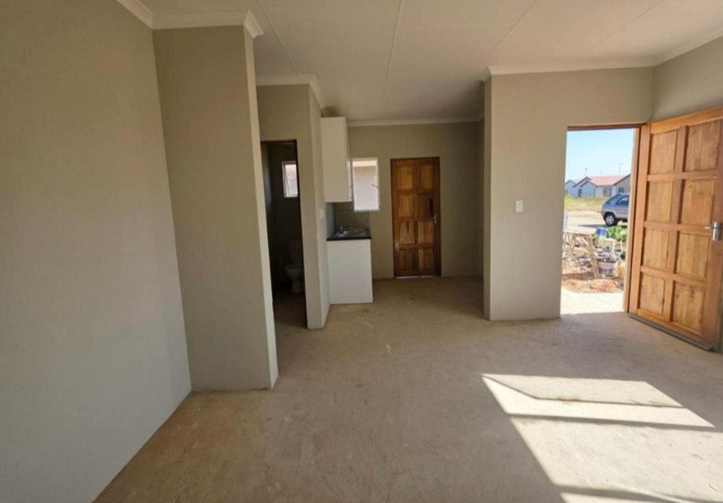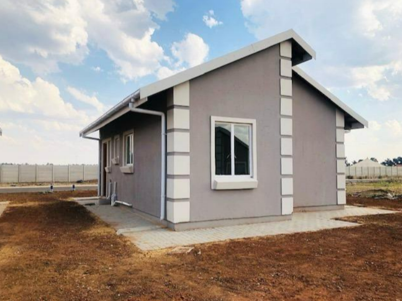 Building package including 2 bedrooms, 1 bathroom, kitchen and open plan lounge and dining area. The building finishes include tiled roof, inside and outside walls are plastered, steel window frames, kitchen sink unit and stove. Prepaid electricity and estimated rates are R 350 and solar geyser. Estimated completion of the building is around four to five months for keys to be handed over.