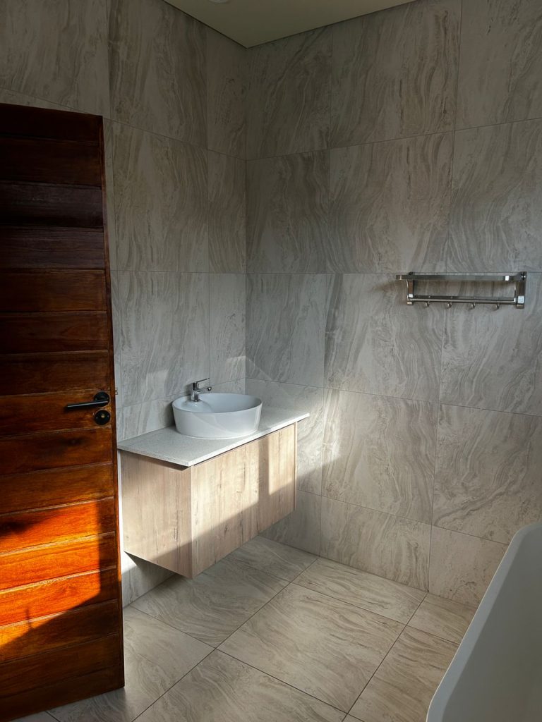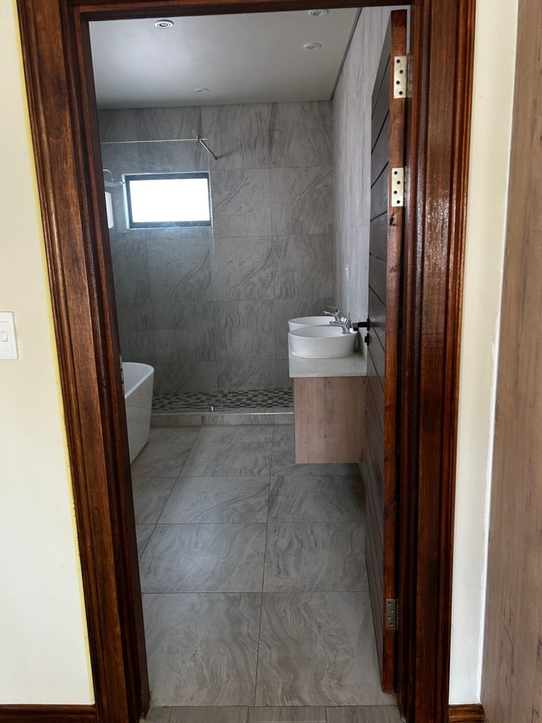 Upstairs, this home offers 3 spacious bedrooms, all en-suite with built-in cupboards and private balconies, allowing natural light and scenic views. The main bedroom features a full en-suite with shower, bath, toilet, and basin, along with its own private balcony — your tranquil escape.