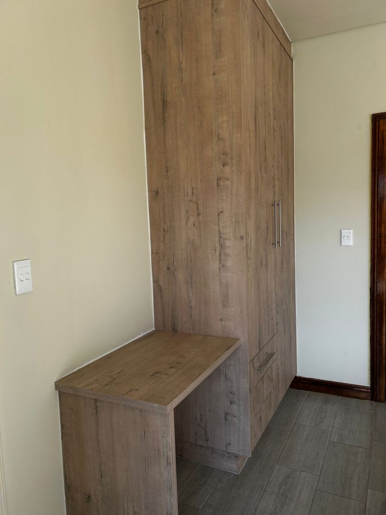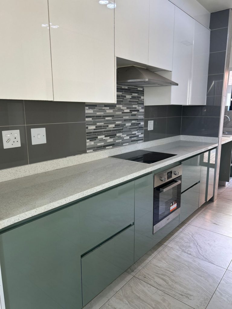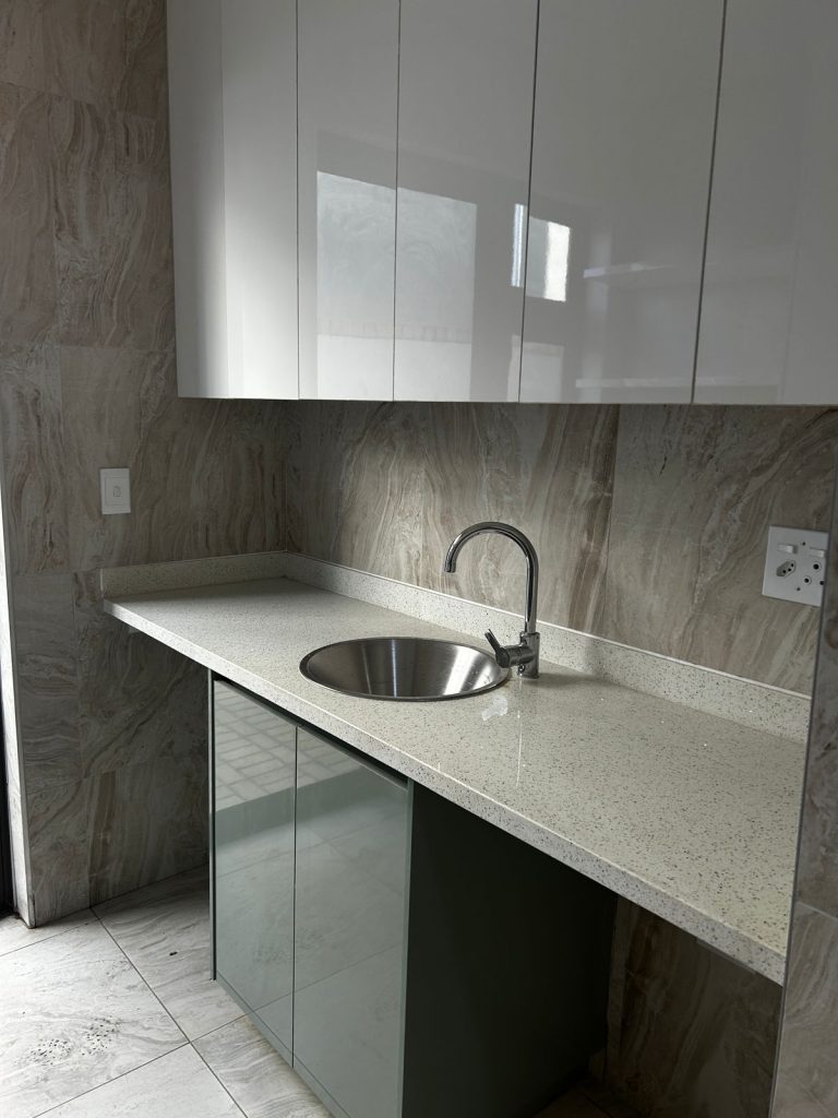 As you enter, you’re welcomed into an open-plan lounge and dining area, ideal for entertaining or relaxing with loved ones. The contemporary kitchen is fitted with built-in cupboards, an extractor fan, and a stove/oven, complemented by generous countertop space — perfect for home cooking.